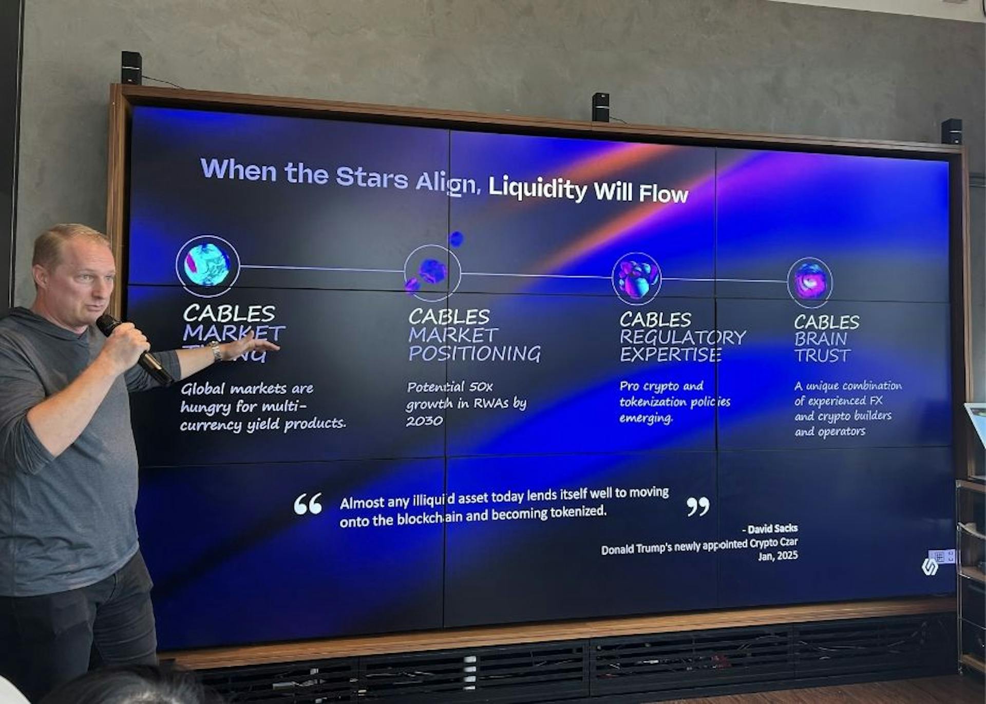Midweek, Co-Founder Matt Miller took the stage to break down the core problems Cables is solving with RWA-backed LSTs and our Perp DEX. The crowd was engaged—people are starting to see the real potential of bringing yield-generating assets onchain and giving them utility in trading and liquidity markets.