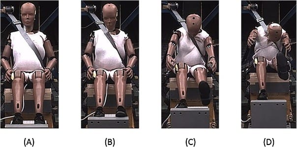 This “female” dummy lacks key differences like variations in muscle distribution, fat composition, spinal alignment, and pelvis shape—all of which affect how a body absorbs impact in a crash. And how your body absorbs impact in a crash determined how fucked you are.