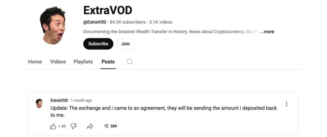 ExtraVOD claimed ignorance of the policy but admitted to creating a second account for high-frequency trading. BYDFi requested the removal of misleading content from his social media.